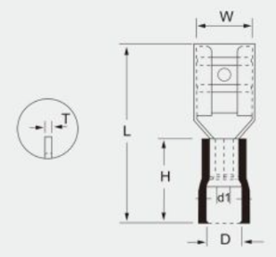 | PFDD1.25-110(5) | 0.5 x 2.8 | 3.8 | 19 | 10 | 1.7 | 3.7 | 0.3 | 10A | 0.5~1.5 mm² AWG 22~16 | Red | 100 |
